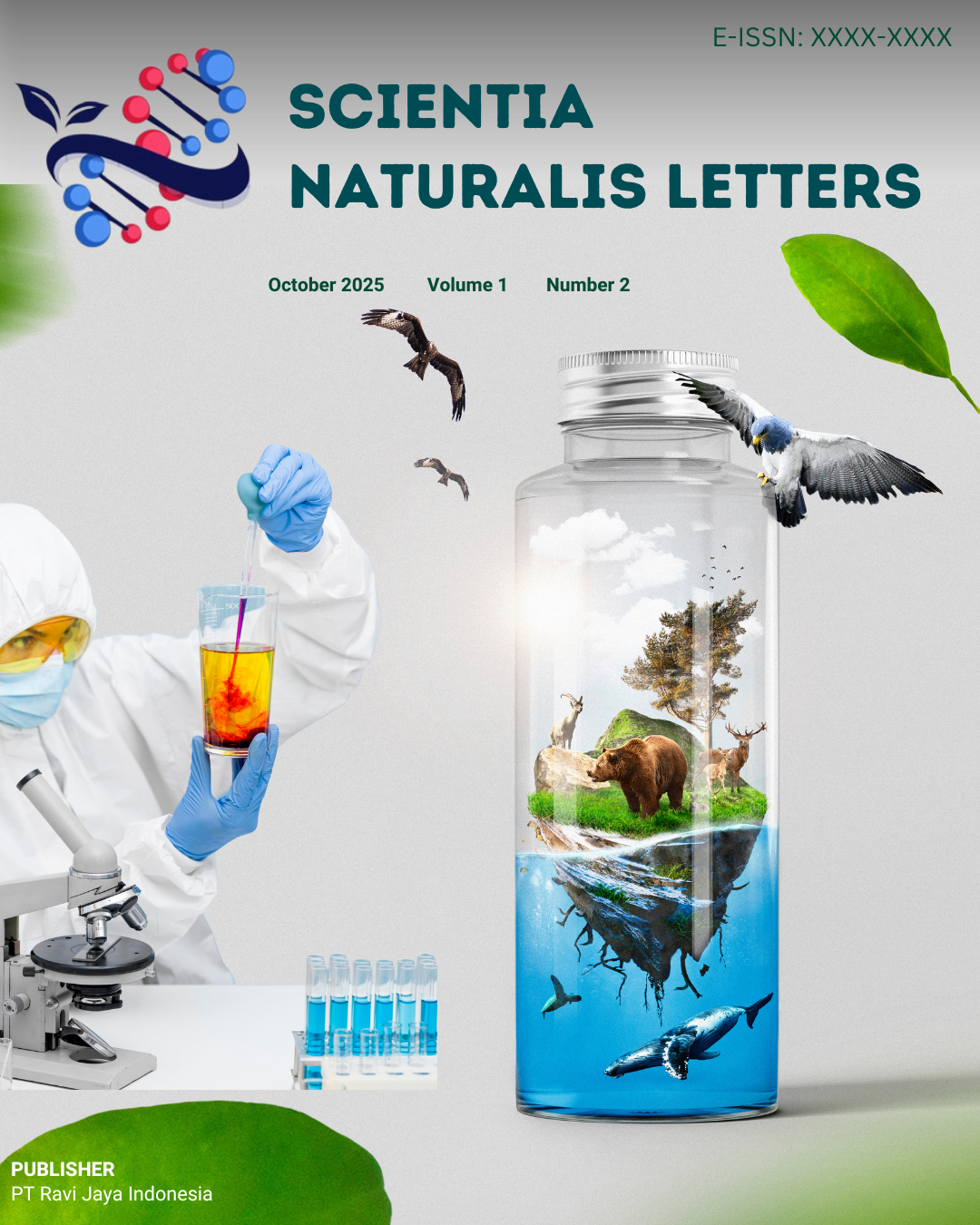 The cover of this second issue of Scientia Naturalis Letters (Vol. 1, No. 2, October 2025) embodies the journal’s vision to promote progress in applied natural sciences through the fusion of interdisciplinary research and innovative approaches. It showcases cutting-edge studies spanning natural product discovery, environmental biotechnology, and analytical chemistry, emphasizing the journal’s dedication to bridging diverse scientific disciplines for sustainable advancement.